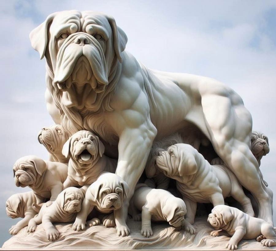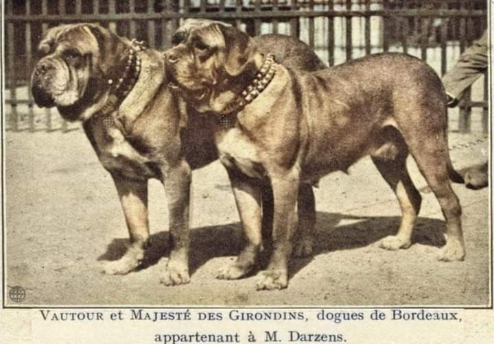 Bordeauxská doga:Říkávalo se o ní,že patří k nejnebezpečnějším,nejhorším a nejhůř ovladatelným psům.Dnes už to nebývá pravda,za tu špatnou pověst může spíš minulost.Jako ostatní plemena tohoto typu-od německých dog až po anglické mastify-sloužila za dávných dob ve válkách a při lovu velkých zvířat.Předky dnešních bordodog pravděpodobně chovali nejen v jižní Francii,ale taky ve Španělsku.Hned v prvních letech po objevení Ameriky se dostali tihle psi na druhou stranu Atlantského oceánu.Svou krutostí v bojích s Indiány-a později při pronásledování uprchlých otroků-si vysloužili nezáviděníhodný věhlas krvelačných bestií.Lidová moudrost učí,že jaký pán,takový krám.O psech to platí taky.Španělští dobyvatelé Ameriky,conguistadoři,nebyli totiž vůbec žádní beránkové a v ukrutnostech své psy daleko předčili.O jednom z jejich nejdivočejších psů zvaném Becerillo,což znamená jalovička,se vypravuje,že prokázal víc soucitu než jeho pánové.Žoldáci prý poslali indiánskou stařenu kamsi se vzkazem a pak za ní pro zábavu poštvali zuřivého hafana.Stařena si před psem ve smrtelné hrůze klekla,ukázala mu dopis a Becerillo ji k obecnému zklamání pouze očichal.Ale už je na čase obrátit pozornost na dnešek:Tak tedy:Na výstavách nás bordodoga,ale i její příbuzní zaujmou svou mohutnou hlavou a tklivým,zadumaným výrazem ve velkých očích.Samozřejmě že dnes to nejsou bezohlední vrahouni,ale pouze nedůvěřiví,někdy trochu mrzutí kliďasi.I tady prostě platí,že pes je takový,jakého ho llidé potřebují mít.