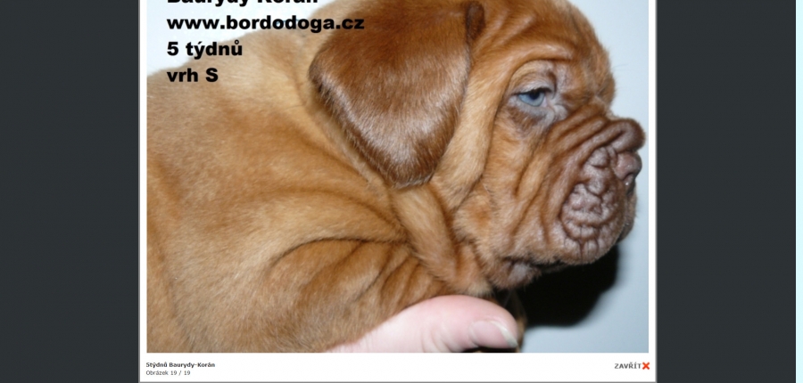 (otec vrhu: Grandšampion Gaston Velká stopa + matka vrhu:Jch,Ch,GrCh.Olli Baurydy-Korán)