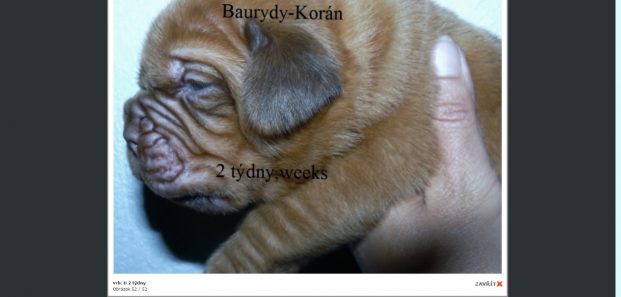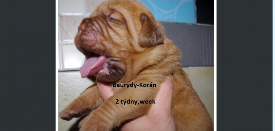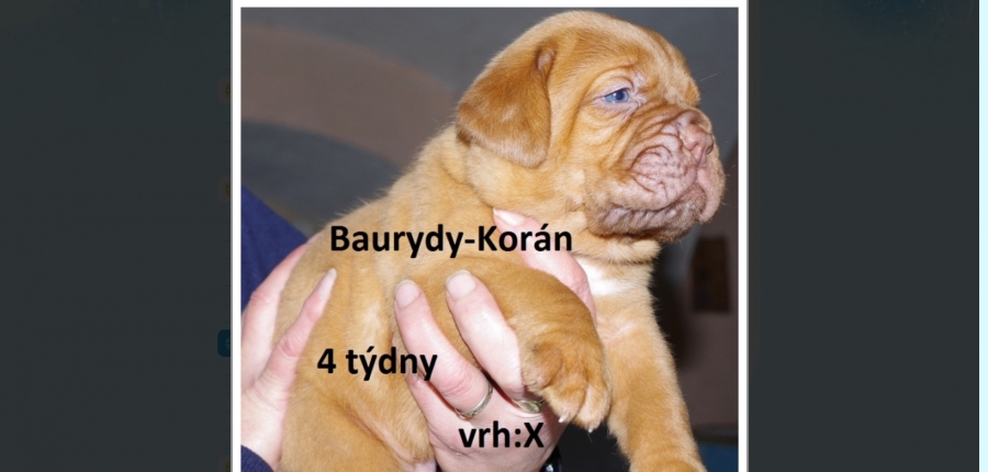 (otec vrhu: Grandšampion Gaston Velká stopa + matka vrhu:Jch,Ch,GrCh.Olli Baurydy-Korán)