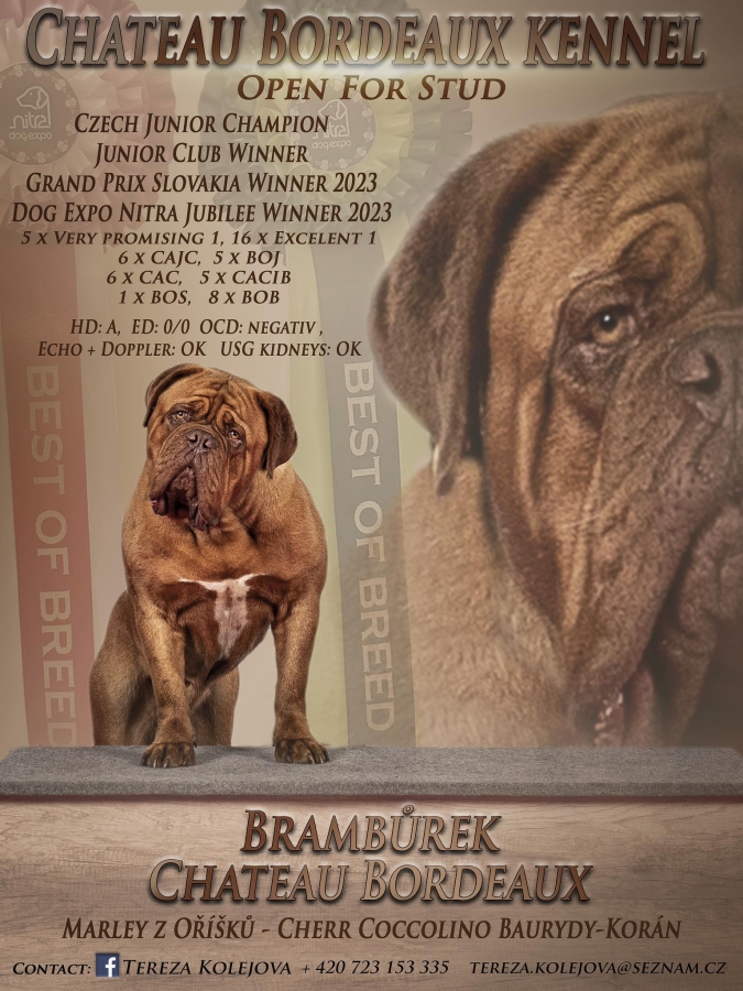 Kdo máte zájem přidat si psa s nabídkou krytí,pošlete prosím Vaši vizitku info s kontaktem na Vás.Zdeňka mail@bordodoga.cz